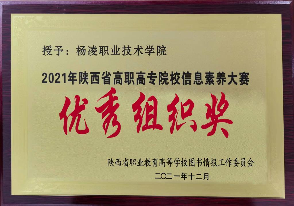 12月18日,2021年省高职高专院校图书馆工作年会暨信息素养大赛总结表彰会宣布了2021年陕西高职高专院校信息素养大赛获奖名单。学校荣获特等奖1项,一等奖2项,二等奖1项,优秀指导教师4名,先进工作者1名,学校荣获“优秀组织奖”。
