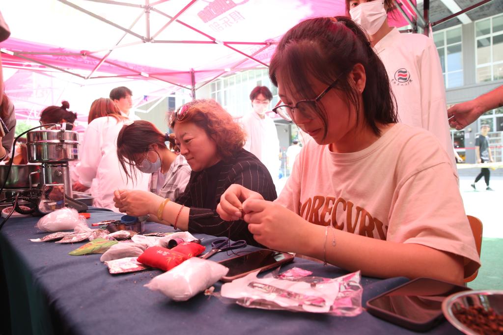 药物工程学院在西、南校区举行了“正禾”育人工程之“传播非遗文化 迎端午 送健康”主题活动。活动主要包含八段锦表演、汉服舞蹈、做香包、传统手工制做山楂丸、投壶、中医药文化宣传和中医药养生科普知识资料发放等。活动现场,汉服爱好者穿上华美汉服,展现中华传统服饰之美。中医药专业的学子在香包内放入自己炮制、研磨、制作的中药材,外观精美,气味幽香,深受现场师生的欢迎。为了赢得精美香包,大家踊跃参加投壶比赛,现场体验了一把“穿越”的乐趣。
