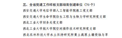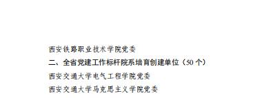 4年来,校党委获批全省党建工作示范高校,学校获批全国党建工作样板支部1个,陕西省“双带头人”教师党支部书记工作室1个,陕西省党建工作标杆院系2个、样板支部2个。