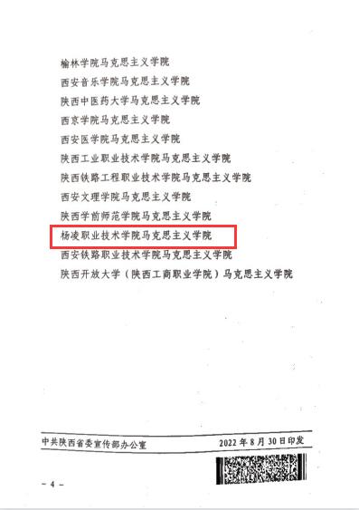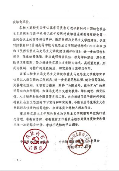 近日,省委宣传部、省委教育工委公布了陕西省第二批重点马克思主义学院和重点马克思主义学院培育单位名单,我校马克思主义学院被确定为陕西省第二批重点马克思主义学院培育单位。
