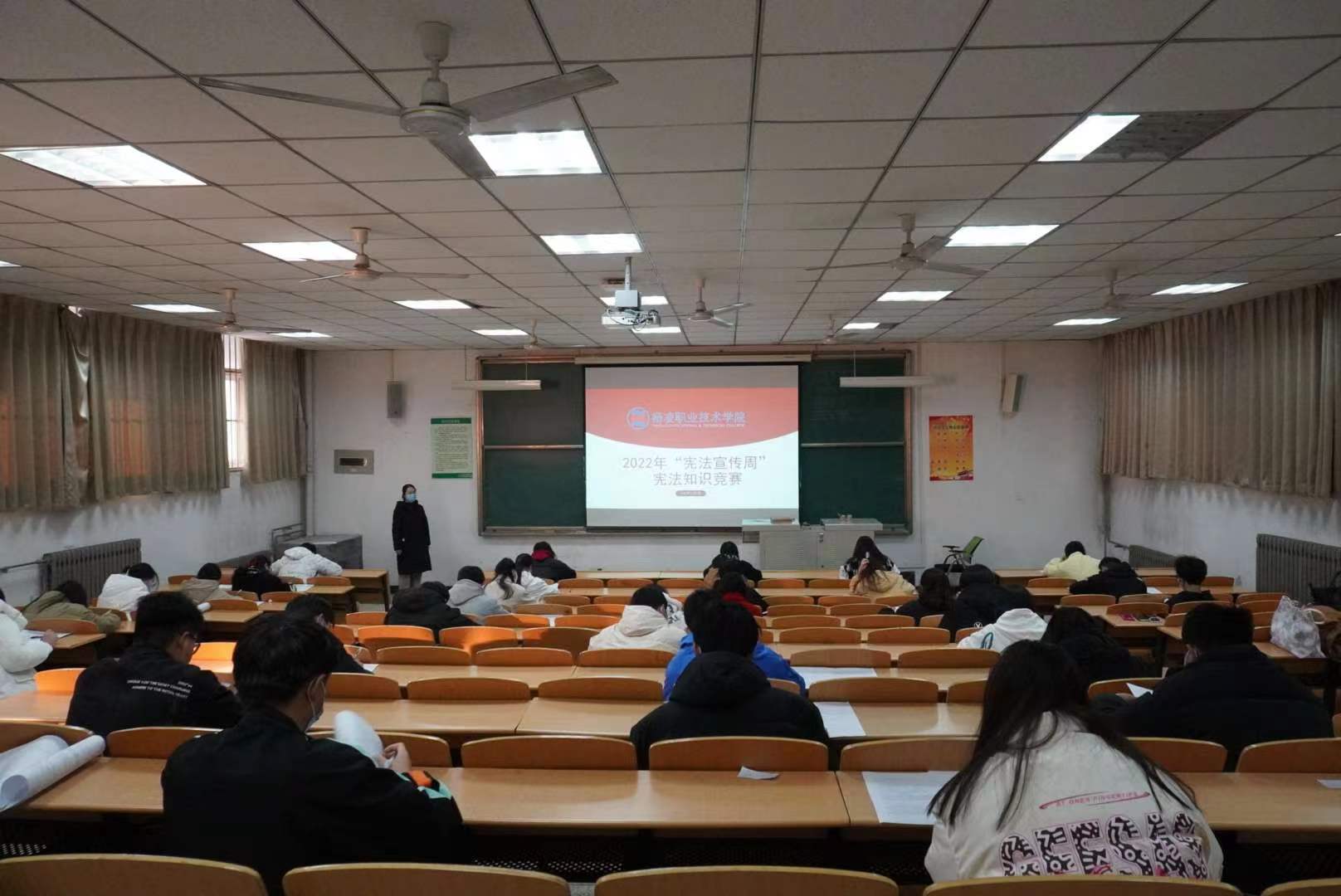 ——开展知识竞赛。通过笔试、现场答题、线上答题等多种形式,开展“学宪法 讲宪法”知识竞赛初赛和复赛,进一步增强学生法律意识,提高学生法治观念。