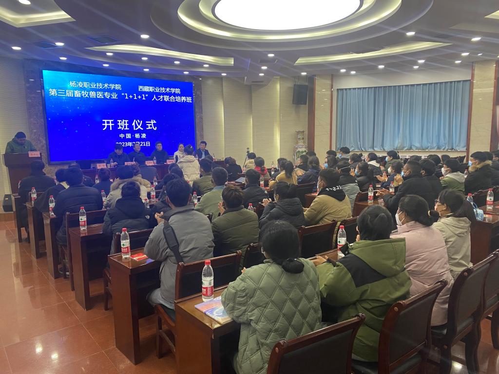 2月21日上午,我校与西藏职业技术学院联合举办的第三届畜牧兽医专业“1+1+1”人才联合培养班开班仪式在水韵楼二楼报告厅举行。西藏职业技术学院副院长、动物科学技术学院院长程晓盈,我校党委副书记任得元、教务处处长刘新燕、学生处处长陈军峰、动物工程学院院长张振仓、动物工程学院副院长李龙出席开班仪式教师代表第三届西藏班44名学生参加开班仪式