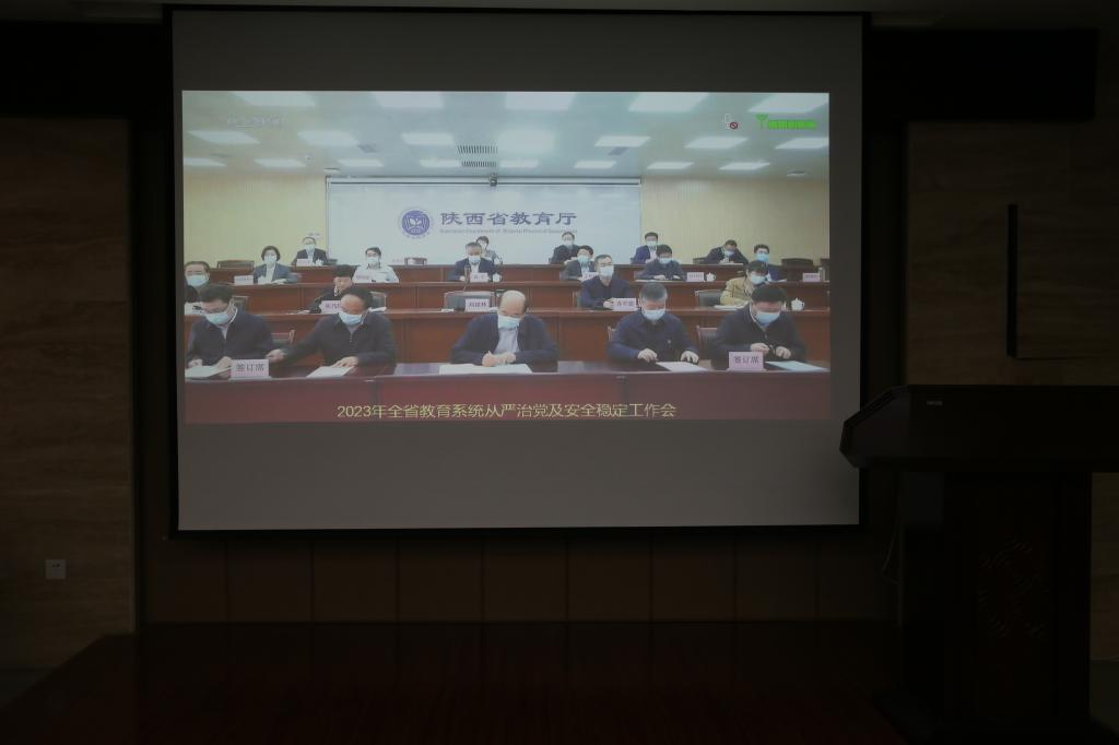 会议通过视频方式召开,设立省教育厅主会场,各市(地)、县(市、区)、高校分会场。我校全体校领导党委委员机关处室负责人各学院党总支(直属党支部)书记在视频会议室参加会议。党委书记王周锁在主会场代表学校党委作了题为《以全面从严治党新成效引领学校高质量发展》的典型发言。