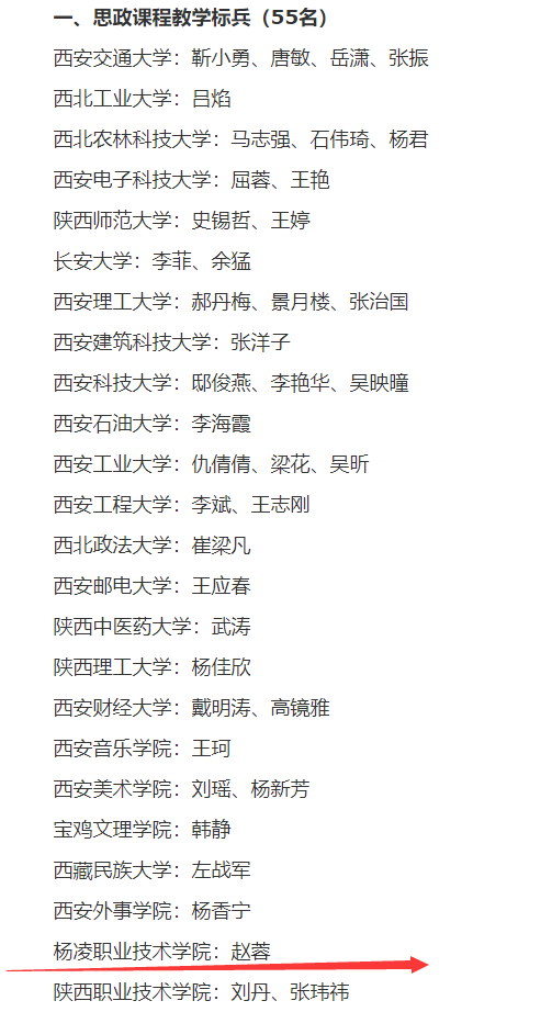 4月13日,2022年度陕西高校思政课教师“大练兵”省级现场展示获奖名单公布,我校马克思主义学院教师赵蓉获“思政课程教学标兵”称号,郭婷、刘晓瑞、薛敏获“思政课程教学能手”称号。