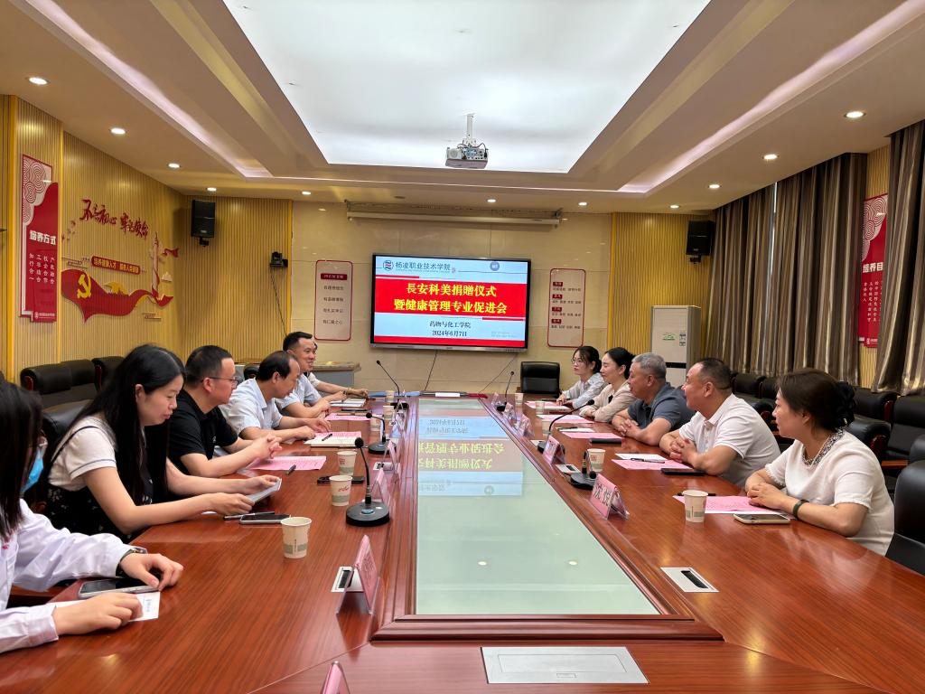 6月7日,长安科美有限公司捐赠仪式暨健康管理专业促进会在药物与化工学院天择楼召开。长安科美董事长龙俊宏、药物与化工学院负责人及教师代表等人参加会议。