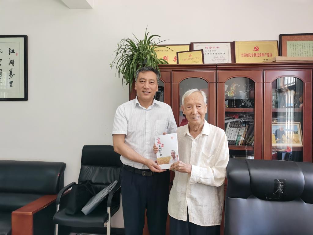 座谈中,赵瑜回顾了自己60余年的育种历程,详细介绍了2021年通过国审的“武农981”“武农988”两个小麦新品种在黄淮麦区的大规模推广工作和后续成果转化情况,以及目前正在培育的小麦新品种情况。韩明军亲切询问了赵瑜的身体和生活状况,感谢他六十年如一日扎根扶风豆村教学实验农场辛勤育种,为学校高质量发展做出的重要贡献,赞扬“赵瑜精神”是学校的宝贵财富,是激发青年教师、广大学生奋发向上的动力,叮嘱他要保重身体,继续发挥专长,为我国小麦育种事业做出更大贡献,继续发挥好示范引领作用,抒写道德模范和陕西好人新故事。他表示,学校将一如既往地支持赵瑜的育种工作,继续大力宣传其先进事迹和“照准目标矢志不渝”的种子精神,进一步将向赵瑜学习宣传活动引向深入。