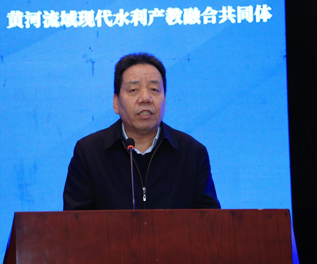 张斌成代表陕西省水利厅致辞,他对黄河流域现代水利产教融合共同体的未来发展提出了三点希望,一是希望共同体能够成为水利创新与人才培养的高地;二是希望共同体能够成为水利教育与产业融合发展的典范;三是希望共同体能够成为传承黄河文化、弘扬水利精神的重要载体。