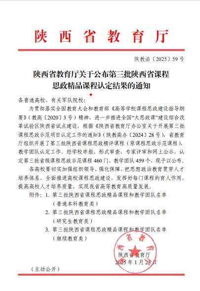 近日,陕西省教育厅公布了第三批陕西省课程思政精品课程认定结果,我校李博副教授主持的《管理学原理》获批继续教育类课程思政精品课程和教学团队。