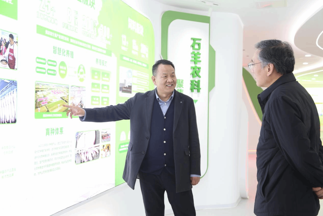 韩明军、仲伟周一行参观了石羊农科总部的企业展厅,深入了解企业的发展历程以及在畜牧养殖、疫病防控和食品加工等领域的产业布局情况与最新技术创新成果,实地考察了蓝田县石羊现代化生猪养殖基地,对生猪养殖的数字化养殖管理模式和绿色生态产业链建设成果进行了深入了解。