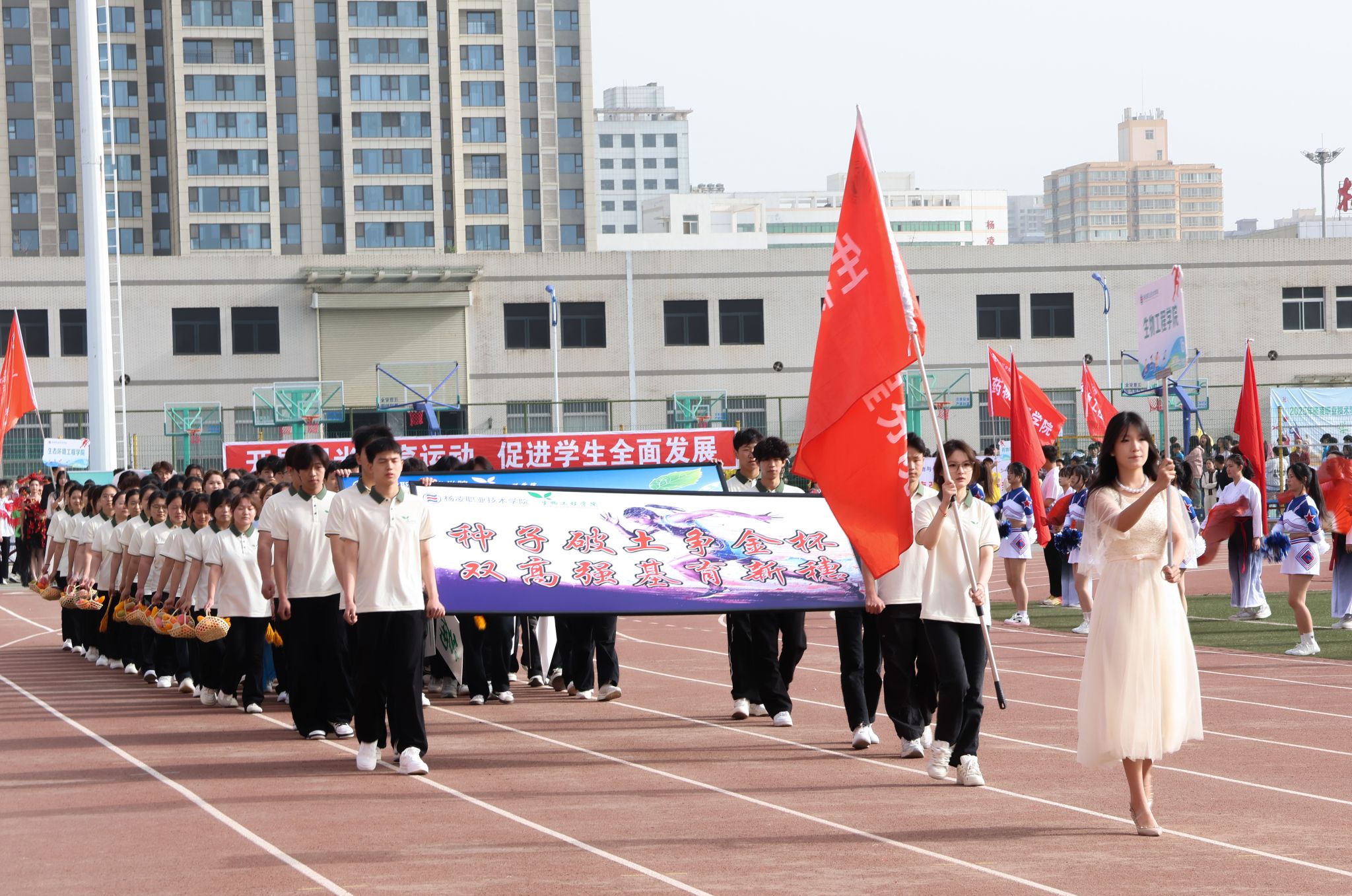 4月22日上午8点30分,伴随着气势磅礴的《运动员进行曲》,国旗护卫队、军鼓队、腰鼓方阵、花束方阵、扇子方阵、彩旗林队、裁判员方阵和各二级学院代表队依次入场。国旗飘扬,鼓声激昂,鼓点铿锵,青年学子精神抖擞、意气风发。扇子舞灵动飘逸,花束方阵尽显青春活力,广播体操表演动作规范、整齐划一。他们精神饱满、朝气蓬勃,展现着杨职人奋斗不息的深厚底蕴与敢为人先、团结协作、追求卓越的体育精神。