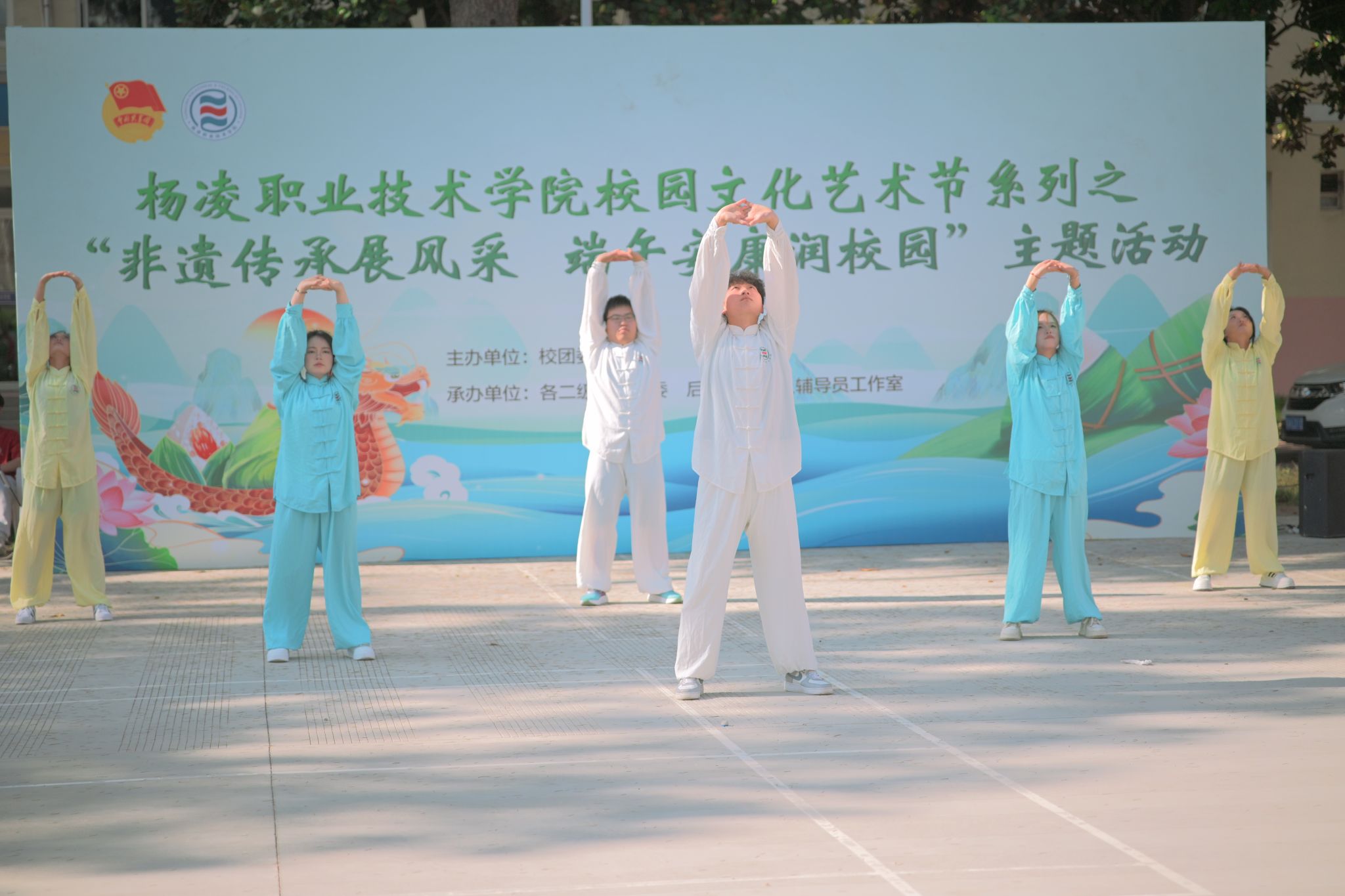 “拾艺端午”非遗技艺体验区亮点纷呈。药物与化工学院“药香廿四候”主题展区,巧妙融合二十四节气与传统中草药智慧,中药制药专业学生带领师生制作含有艾草、陈皮、丁香等中药材的特色香囊。水利工程学院、交通与测绘工程学院现场展示秦砖汉瓦拓印技艺,动物工程学院精心设置非遗缠花工作坊,建筑工程学院开展艾草养生枕制作教学,机电工程学院、旅游与管理学院设置漆扇绘制、帆布包拓印等创意项目。参与者纷纷感慨“像开启了一场穿越千年的文化盲盒之旅”。