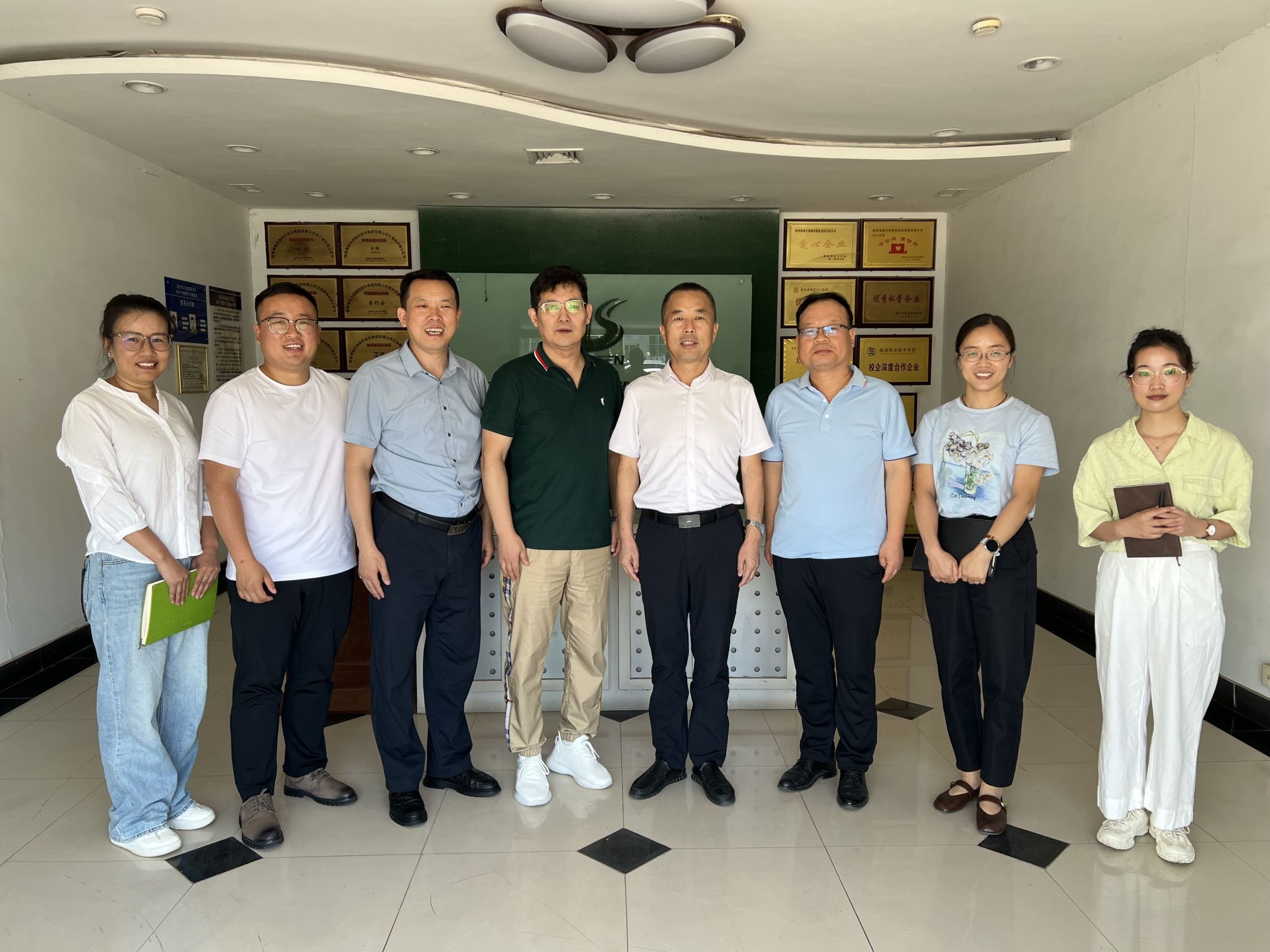 与陕西博森生物制药有限公司负责人和优秀毕业生合影
