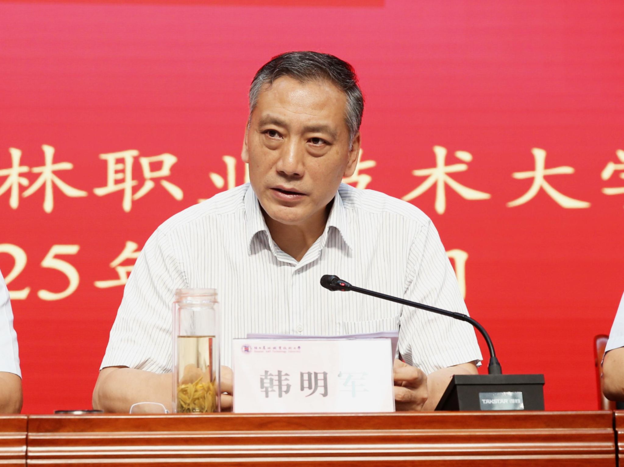 韩明军在讲话中指出,今年上半年在全校上下的共同努力下,学校如期升格成为陕西省首所全日制公办本科层次职业学校,成功入选第二期国家级“双高校”,新校区建设进入后期收尾阶段,三件关乎学校长远发展的大事取得了重要突破。他强调,在看到发展成绩的同时,要清醒地认识未来发展过程中面临的新挑战。首先,要充分认识学校发展面临的形势。要认清学校发展的紧迫形势,切实增强忧患意识;要清醒认识工作中的短板不足,在补齐短板、改进不足上下功夫;要了解学校建设发展面临的困难,依托优势资源多渠道争取支持。其次,要凝聚推动高质量发展的强大力量。要切实强化思想引领,引导广大教职工树牢主人翁意识,增强责任感和使命感;要切实加强作风建设,校领导班子、各级领导干部以上率下,带动广大教职工以更加实事求是、严谨务实的作风干事创业;要切实提高能力本领,尤其是加强职业本科教育的学习研究,深刻领会“新双高”建设内涵要求,提高推动工作的能力和水平。要开创性做好本学期重点工作。要在党建思政、厅校共建、综合治理、职业本科建设、人才培养、产教融合、师资队伍、科研推广和社会服务、学生教育管理、国际交流合作等重点领域、重点工作上加大力度,深化改革创新,有针对性、开创性地予以推动。