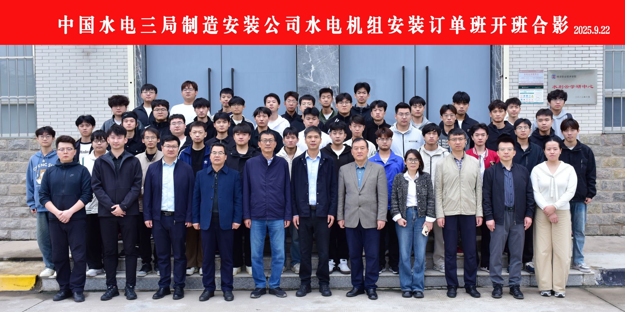 中国水电三局制造安装公司人力资源部主任安桂珍、招聘主管王嘉欣,水利工程学院负责人、教师代表及40名订单班学生参加开班仪式。