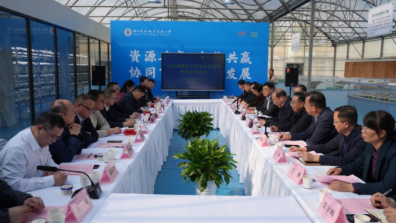 白继中对学校的办学成绩表示祝贺,并介绍了新疆理工职业大学的办学定位、发展现状与未来规划。他表示,作为一所新疆生产建设兵团新近组建的职业本科大学,新疆理工职业大学在国家部委和兵团党委的大力支持下,在各兄弟院校的无私帮助下,正处于高速建设期,但在学科建设、人才培养和师资队伍建设等方面还亟待加强和提升,希望依托教育部“大团组+小团组+专业包建”援助机制,邀请陕农大参与支援共建,为学校高质量发展注入新动力。