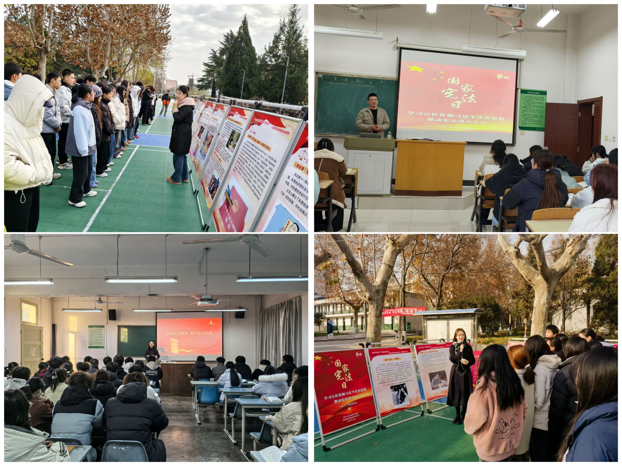 ——宪法宣传进课堂。马克思主义学院将习近平总书记关于宪法的重要论述、党的二十届四中全会精神、中央全面依法治国工作会议精神有机融入课堂教学,全面阐释宪法的核心要义与时代价值,引导学生深刻理解宪法与国家发展、个人成长之间的内在联系,增强对宪法权威的认同与尊崇。学院同步策划并推出宪法主题系列展板,以图文并茂的形式生动展现宪法精神,并组织师生开展现场教学活动,推动宪法学习真正入脑入心、见行见效。