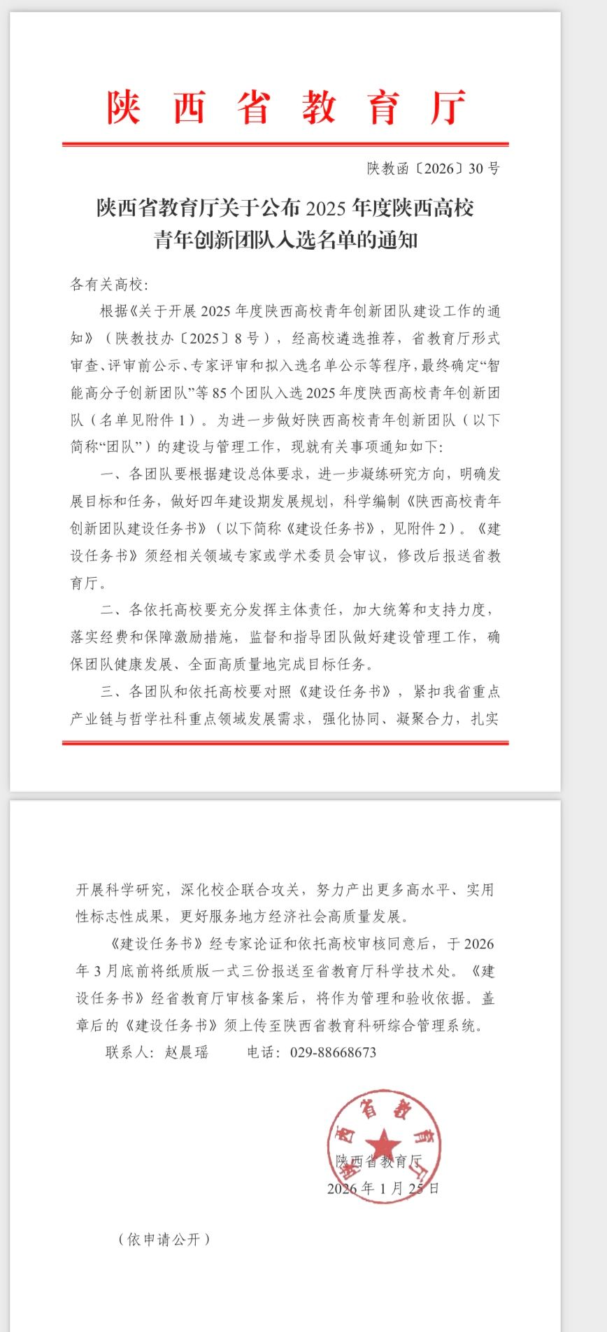 近日,省教育厅公布了2025年度陕西高校青年创新团队入选名单,由我校教师仇薪鑫牵头的奶畜健康生产与疫病净化创新团队、王法景牵头的农情信息感知与遗传育种创新团队成功入选。截至目前,学校省级青年创新团队达 5 个,标志着青年科研梯队建设再获重要突破。
