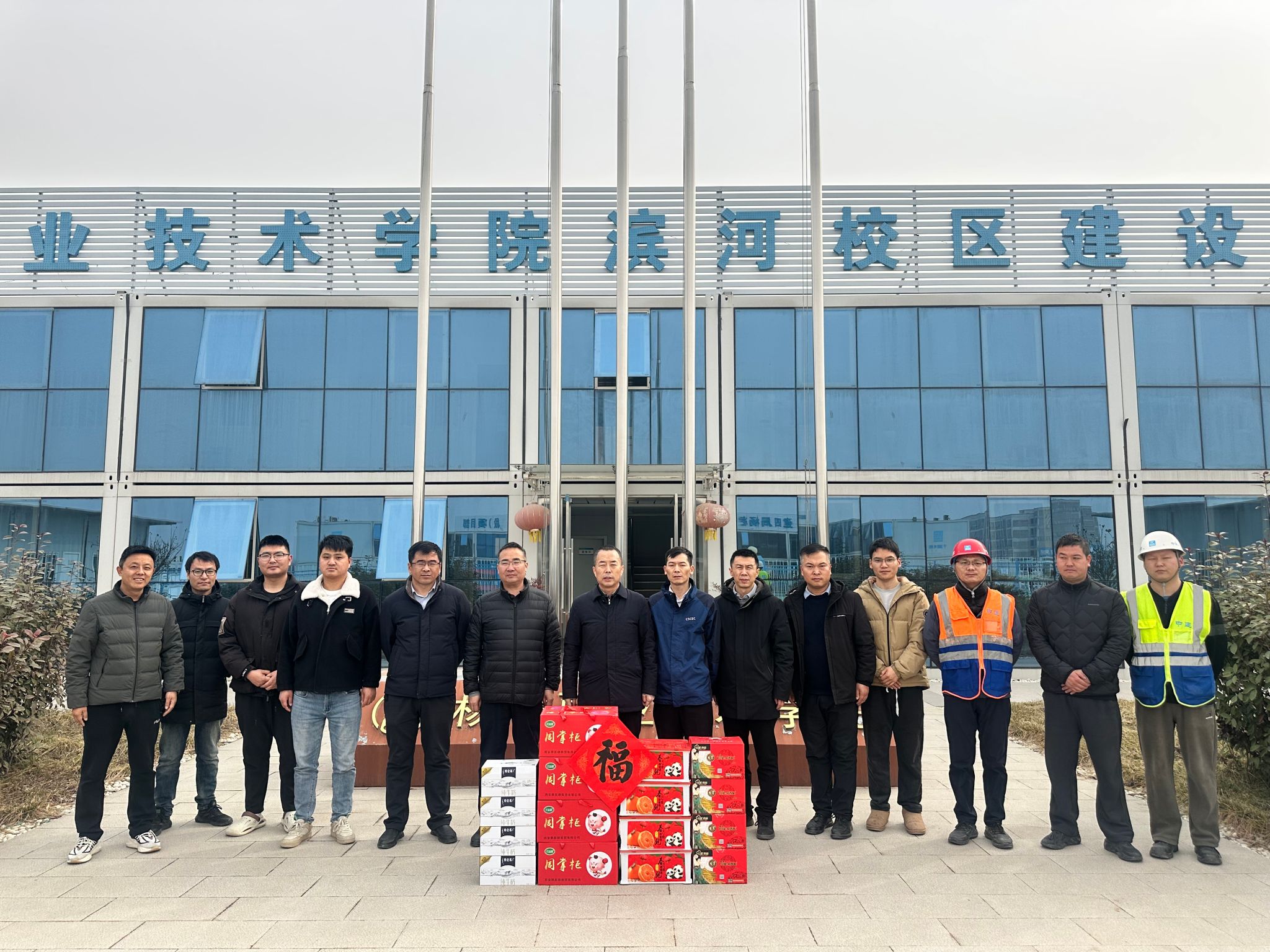 会后,胡俊鹏为新校区项目部一线建设人员送上春节慰问品,向全体坚守岗位、辛勤付出、全力推进项目建设的一线人员表示谢意。