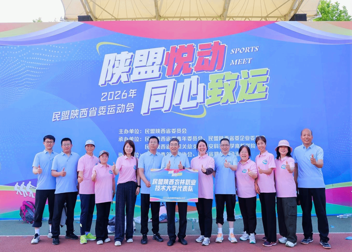 4 月 26 日,民盟陕西省委“陕盟悦动・同心致远”盟员运动会在西安科技大学举办。全省29支民盟基层组织代表队同场竞技、共展风采。我校民盟12名盟员参与欢乐热身跑、拔河友谊赛、跳绳接力赛等项目,斩获拔河友谊赛和跳绳接力赛两项季军。