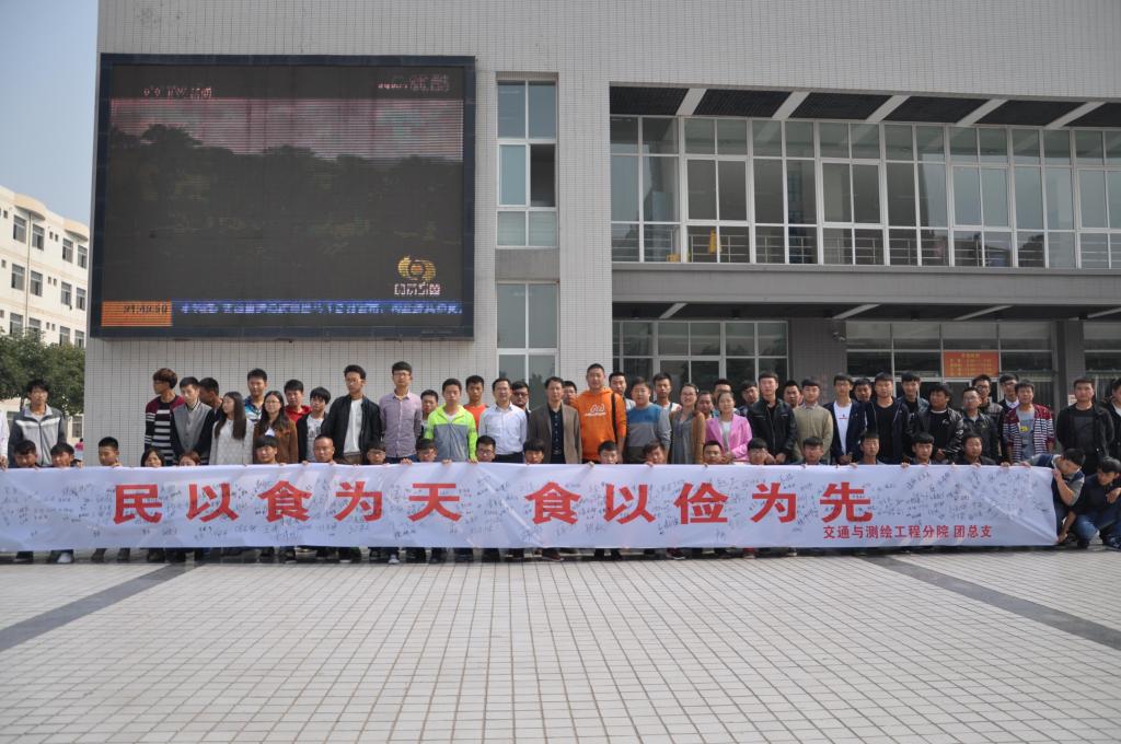 “一粥一饭,当思来之不易;半丝半缕,恒念物力维艰。”在1016日即“世界粮食日”当天,交通与测绘工程分院在南校区水善厅前开展了“民以食为天,食以俭为先”的主题公益活动。分院领导及200余名师生参加了此次活动。