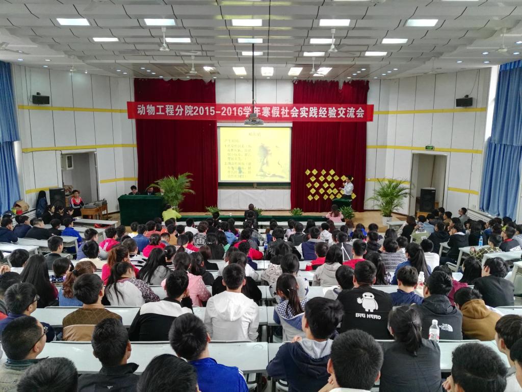 下午,动物工程分院寒假社会实践经验交流会在西校区台阶教室举行。陕西康达尔农牧有限公司技术经理拜钊、动物工程分院负责人、教研室主任、辅导员、班主任及学生共500余人参加了交流活动。