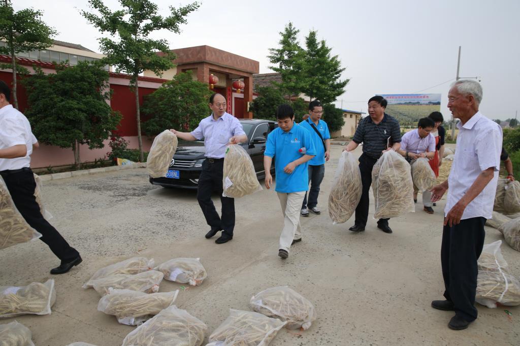 学习活动结束后,董小龙在王周锁和赵瑜的陪同下,参观了赵瑜的试验田,实地了解赵瑜小麦育种的情况。参观途中,突然天上下起了大雨,董小龙、王周锁冒着大雨,和大家一起,帮赵瑜把晒在外面的小麦收回仓库。