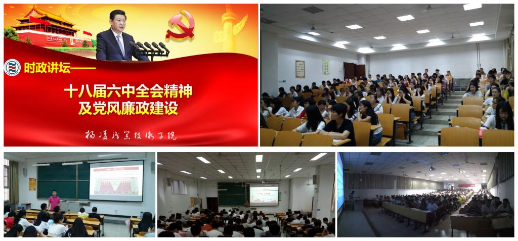 68日至9日,由思政部组织的以“十八届六中全会精神及党风廉政建设”为主题的时政讲坛于分别在全院三个校区同时宣讲。主讲教师紧紧围绕十八大以来党中央从严治党的新实践新成效,深刻阐释了十八届六中全会的重大意义,深入解读了十八届六中全会精神以及全会审议通过的《准则》和《条例》中的许多新观点新要求新举措,深度剖析了党风廉政建设和反腐败斗争的新认识新成效新任务。