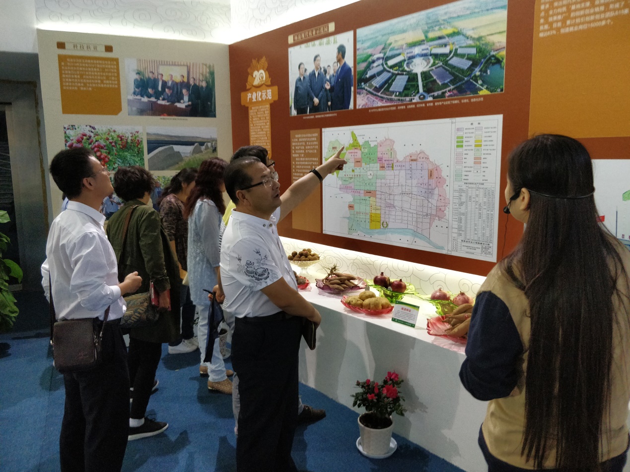 会展中心A馆东厅,老师们在参观《“回顾光辉历程 展望美好未来”——杨凌示范区成立20周年建设发展成就展》的过程中,看到杨凌今昔对比的很多图片和照片,不由自主地回忆讨论起杨凌示范区这20年来的巨大发展变化。参观结束后,很多老师还现场联系落实了带领学生来进行现场实践教学的安排。