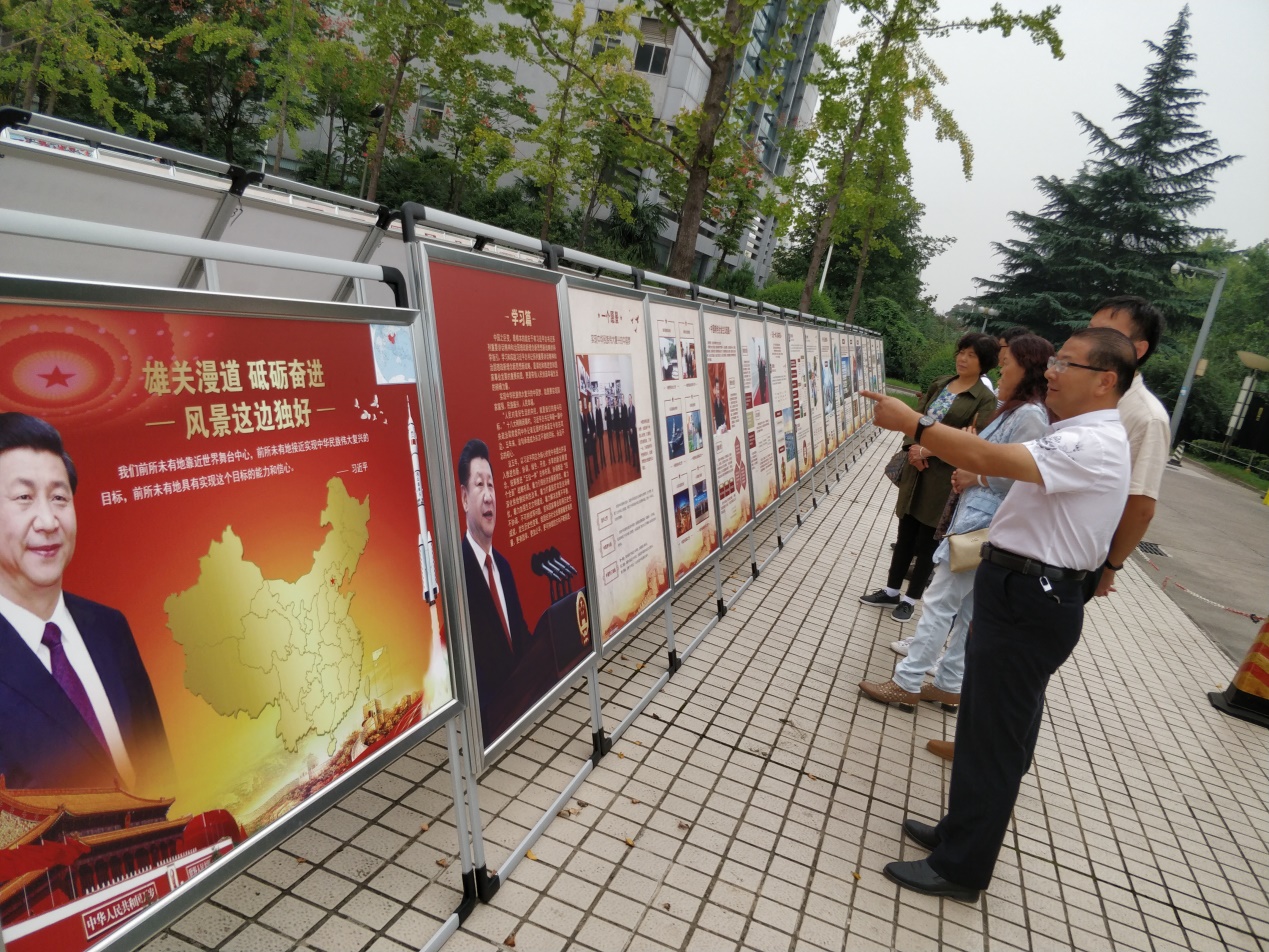 在政务大厦西门广场南侧,大家一边认真参观《砥砺奋进的五年 ——喜迎党的十九大 追赶超越在陕西》主题图片展览,一边结合思政课教学的相关内容展开了热烈讨论,并纷纷拿起手机拍下了很多珍贵的图片资料,以备后边用作教学素材。
