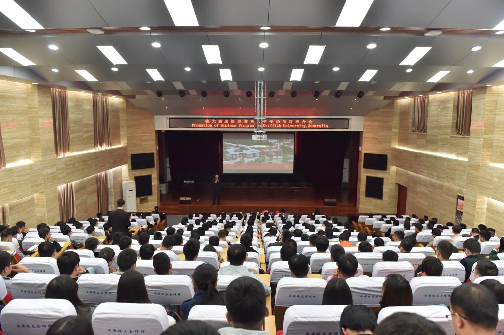 会见结束后,澳大利亚格里菲斯大学代表团在我院南校区思辨堂,为我院近300名大二、大三年级的学生介绍了该校在中国开展的专升硕项目,并与在座学生进行了互动交流。我院学生对澳大利亚格里菲斯大学及该校专升硕项目表现出浓厚兴趣,个别同学表示将进一步了解该项目的实施情况,作为自己今后可能留学的选项。