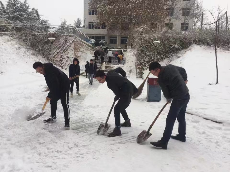 虽然天气寒冷、积雪深厚,但这一点也没有影响大家的参与热情和工作效率,大家有的拿铁锹,有的拿扫帚,有的拿簸箕,团结协作,齐心协力地开展了除雪活动。尽管每个人的脸都冻得通红,但手中的扫雪工具却不停地忙碌着,经过2个小时的劳动,大家将积雪和冰层一点点地铲起集中堆放,在寒风中清理出了干净畅通的道路,最后还堆起了一个雪人。劳动的过程中充满了欢声笑语,整个扫雪队伍也成了冬日校园里一道靓丽的风景线。