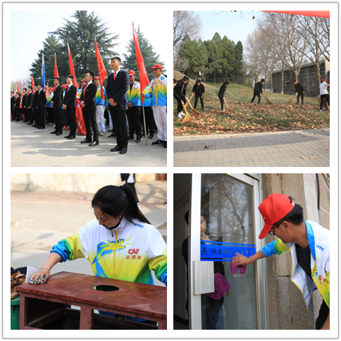 活动启动后,1000余名志愿者在横幅上签名承诺。随后,志愿者小分队们分赴三校区开展了清除校园枯枝落叶、擦洗公共垃圾桶及路标路牌、打扫校园道路卫生等志愿服务活动。