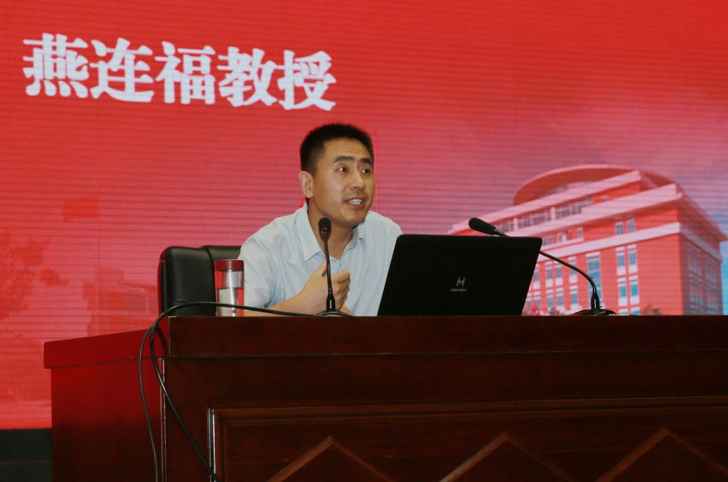 燕连福以《学习马克思,建功新时代》为题,从学习马克思品格、誓做爱国者;学习马克思主义、树立为民志;学习中国化理论、解决真问题;践行马克思主义、建功新时代等四个方面,讲述了在新时代,大学生如何学习马克思,如何践行总书记的教诲,为师生解读马克思主义思想提供了全新的视角,并结合实际工作践行马克思主义,解决真问题,提升工作能力进行了具体指导。
