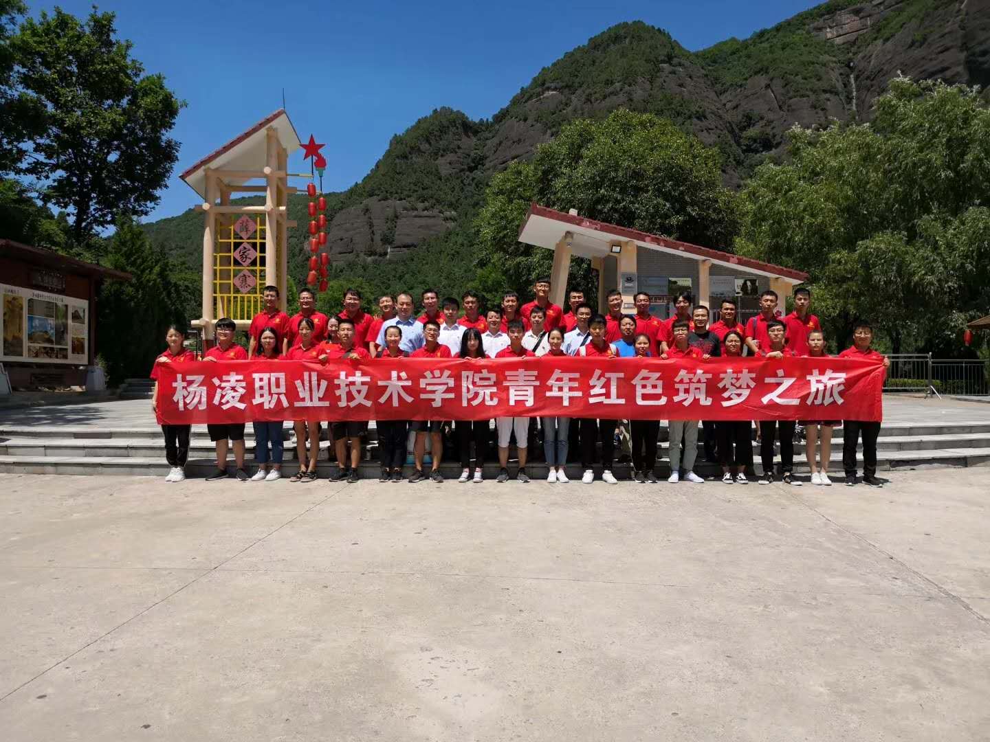 为庆祝中国共产党建党97周年,深入贯彻落实习近平总书记给中国“互联网+”大学生创新创业大赛“青年红色筑梦之旅”大学生重要回信精神,结合《杨凌职业技术学院第四届“互联网+”大学生创新创业大赛实施方案》对“青年红色筑梦之旅”项目团队活动的总体安排部署,6月28日,学院教务处、学生处(团委)、招就处、思政课教学部共同组织“青年红色筑梦之旅”赛道40余名项目团队师生赴陕甘边照金革命根据地纪念馆、薛家寨革命旧址重走红军路,接受革命传统教育。