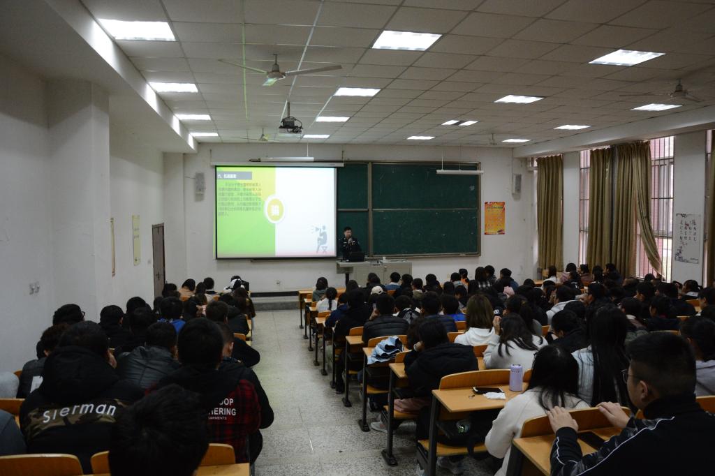 11月16日下午,杨凌示范区公安局杨凌分局李台派出所警官穆万荣应邀来到建筑工程分院,为2018级学生做题为“大学生校园防诈骗、防盗窃安全教育”知识讲座。