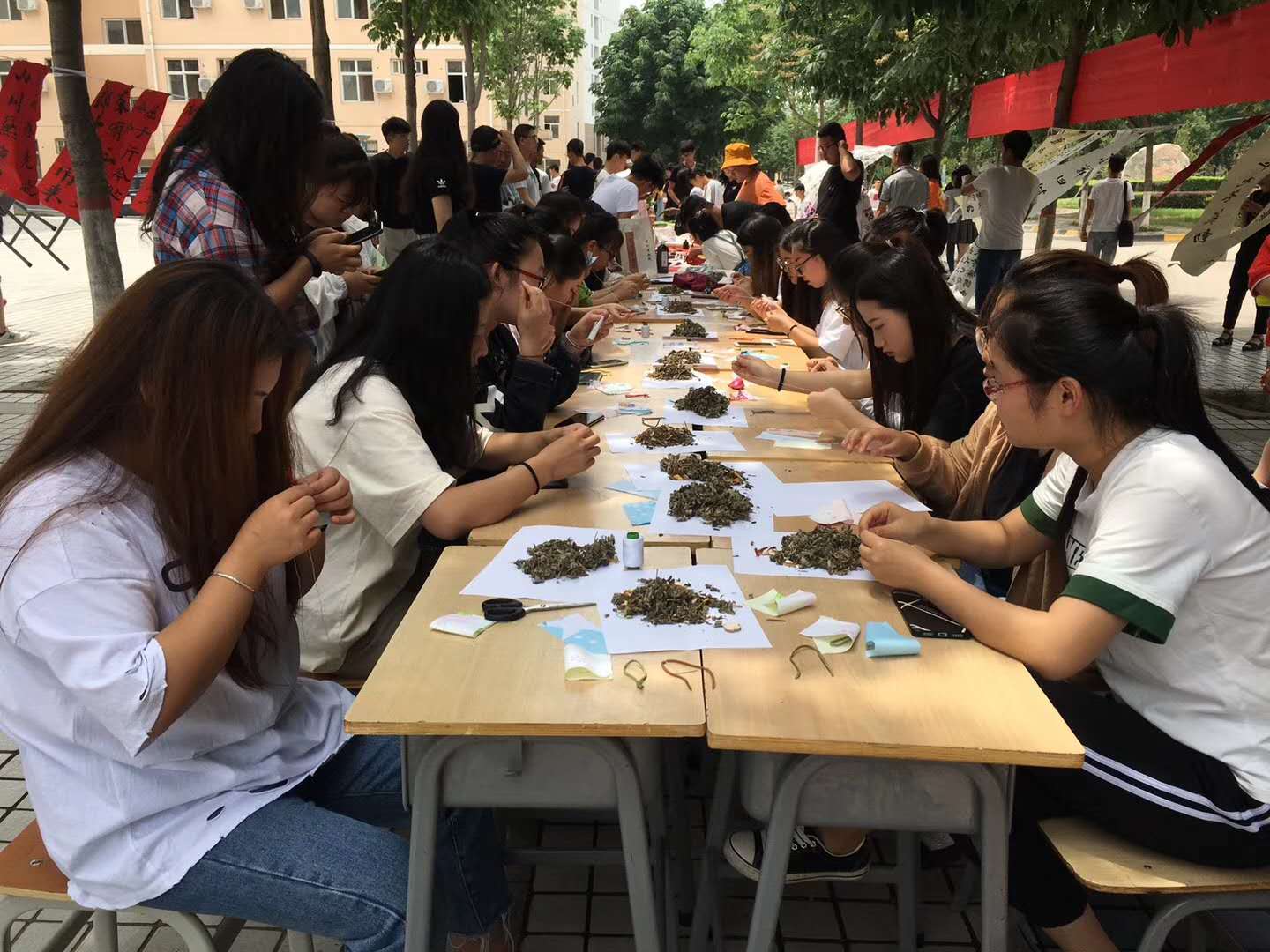 活动包括组织学生制作香包和包粽子,学习传统工艺;为师生赠送香包和粽子,感念师恩,增进师生情感;举办屈原名篇诵读、农耕文化书画展、现场书写二十四节气名称、节日谜语竞猜、文艺节目展演等,向全院师生生动形象地展现了中华优秀传统文化的魅力。活动现场气氛热烈,广大师生踊跃参与,旅游与管理分院还特别邀请了传统手工艺人屈惠珍为师生现场传授包粽子、做香包。