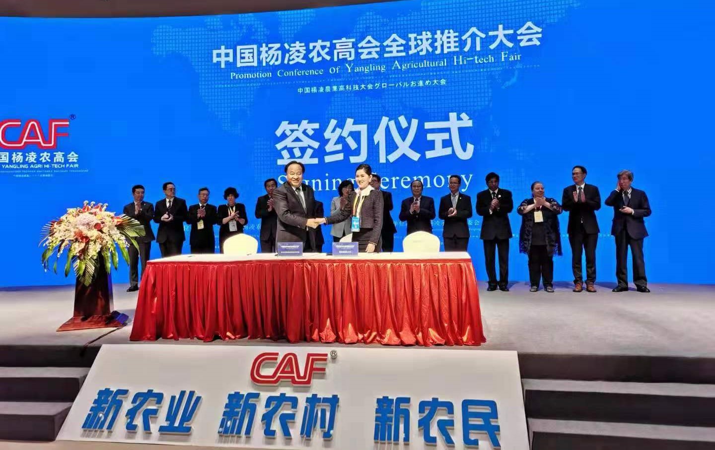 10月23日上午,我院院长王周锁参加了 “中国杨凌农高会全球推介大会”。在大会的第二部分“重点项目签约仪式”环节,院长王周锁与柬埔寨帕拉贡(PARAGON)国际大学董事会主席苏菲克妮(CHEA Sophakanny)女士签订了《国际教育交流合作备忘录》。双方同意在交换生、科研合作、留学生培养、以及在柬埔寨建立杨凌职业技术学院分院等四个方面开展国际合作与交流工作。