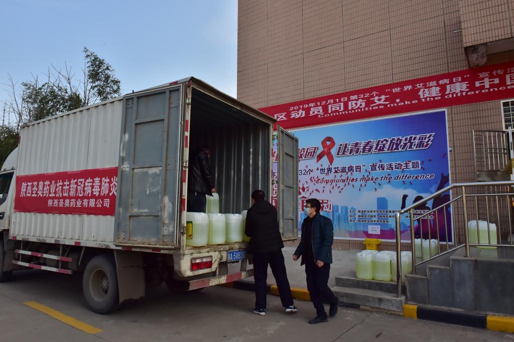 23日上午,陕西圣奥动物药业有限公司为我院送来了目前急需的防疫药品——284消毒液。党委书记陈宁代表学院接受捐赠,副院长张迪主持捐赠仪式。