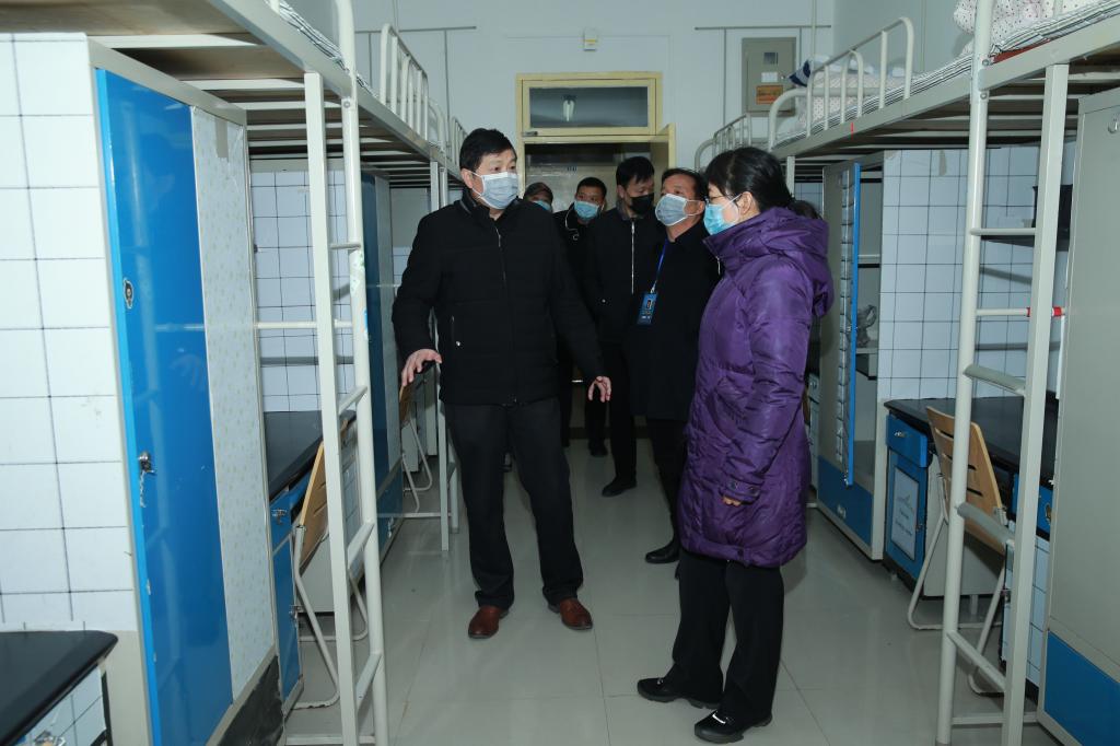 慰问结束后,学院领导还检查了西校区疫情防控隔离区设置情况。