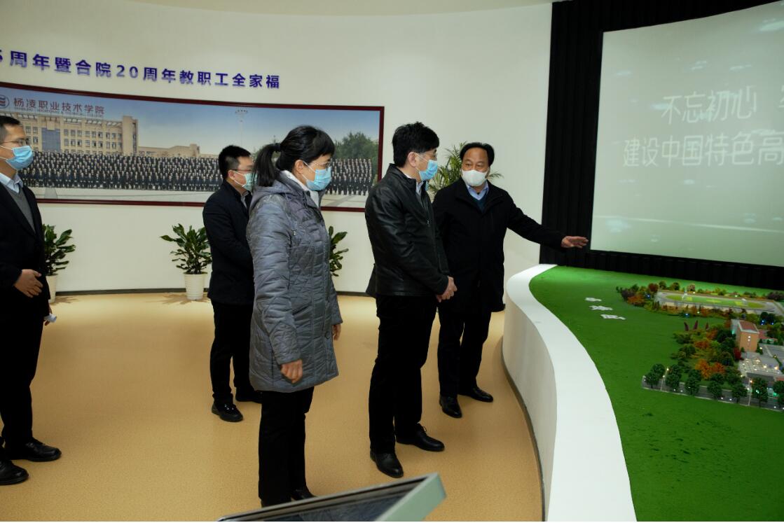 在学院党委书记陈宁、院长王周锁、副院长张迪的陪同下,朱晓渭一行参观了我院校史馆、水工大厅实训中心。在随后召开的座谈会上,陈宁从学院概况、发展思路目标、服务乡村振兴、涉外等防控举措、意见和建议等五方面作了汇报。
