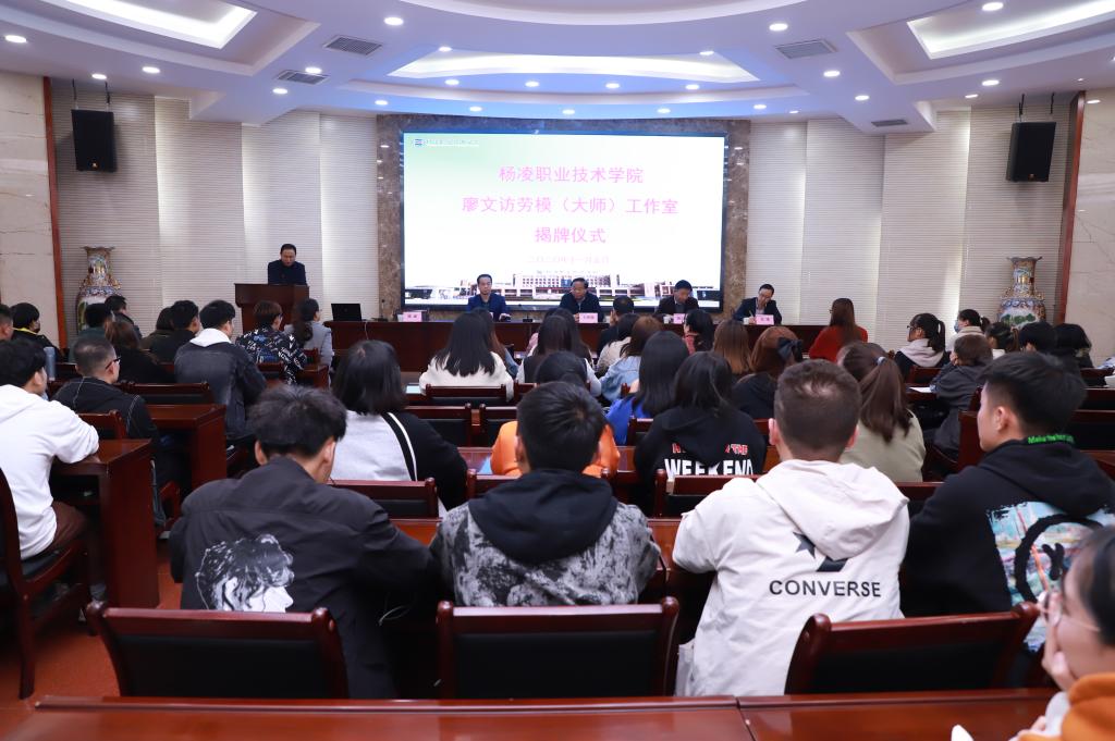 115下午我校建筑工程分院首个技能大师工作室--廖文访劳模(大师)工作室揭牌仪式在水韵楼二楼报告厅举行。校长王周锁,陕西煤业化工建设(集团)有限公司战略规划部副总经理廖文访,以及建筑工程分院负责人参加揭牌仪式。
