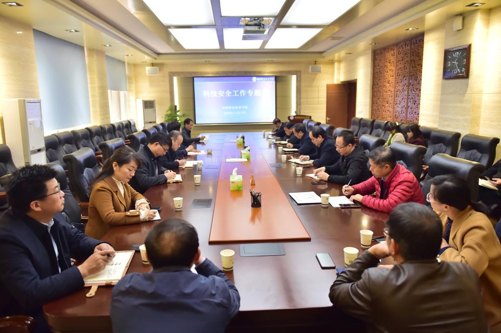 会上科技与教育研究处处长冯旭传达了省教育厅有关高校科技安全的文件精神。刘粉莲结合文件要求对科技安全相关工作进行了安排部署,并提出三点要求:一是要提高政治站位,重视科技安全工作;二是各相关部门根据自己的业务,严格审核,开展自查自纠,确保科技安全;三是要将会议精神传达到每个教职工,强化科技安全意识,做好科技安全工作。