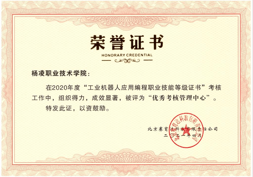 4月23日至25日,智能线集成与应用、运行与维护1+X证书制度试点工作说明会暨工业机器人应用编程1+X证书制度试点总结交流会在无锡职业技术学院国际交流中心举办,我校“工业机器人应用编程职业技能等级证书”考核管理中心被评为“优秀考核管理中心”。