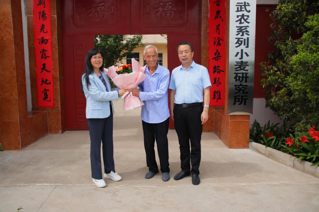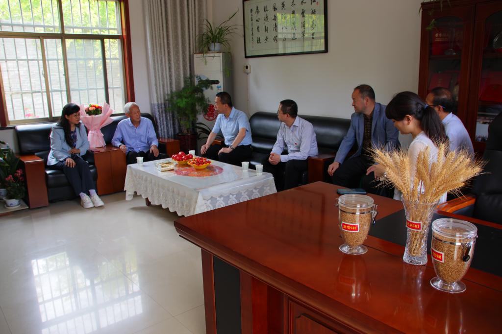 5月20日下午,党委书记陈宁,副校长胡俊鹏,党政办公室主任张朝辉、纪委监督检查室主任高掌平、科技与教育研究处处长冯旭及财务处处长邹剑等一行,赴扶风豆村教学实验农场,看望慰问著名小麦育种专家、我校研究员赵瑜。