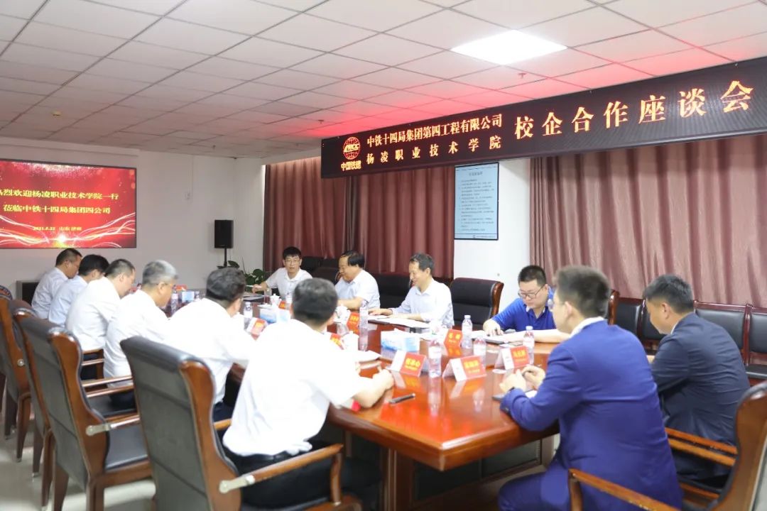 王周锁一行先后来到中铁十四局集团三公司、四公司,主要围绕学校人才培养和企业用工共识、学校老师与企业能工巧匠人力资源共享、教师专业研究与企业科技创新共赢等方面调研座谈。