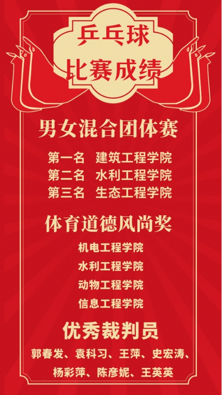 经过激烈地角逐,建筑工程学院获得团体第一名,水利工程学院获得团体第二名,生态工程学院获得团体第三名。
