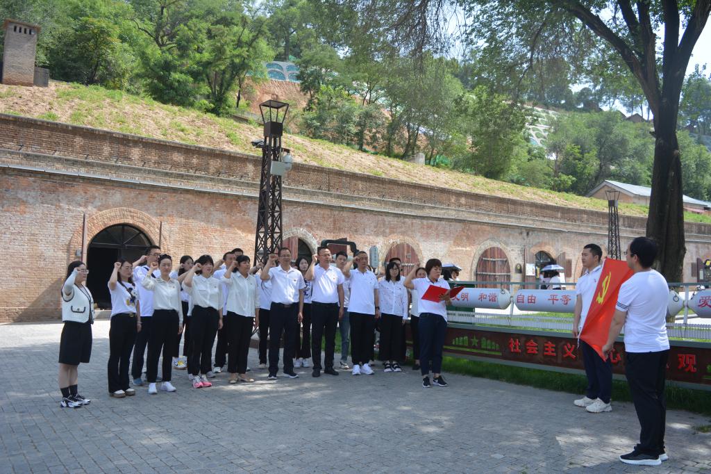 活动中,全体党员面向党旗,重温入党誓词。随后,大家参观了申新纱厂办公楼和窑洞工厂等历史遗迹,认真听取荣氏申新纱厂内迁宝鸡、实业救国的珍贵历史事迹。通过听讲解、浏览历史实物、图片、文献资料,大家详细了解纱厂内迁的时代背景和经过,重温了发生在宝鸡的那段热血沸腾的抗战历史,感受了爱国奉献、自力更生、艰苦创业的抗战精神,共同见证了民族企业家实业救国的伟大创举,接受了一次触及思想灵魂的深刻洗礼。