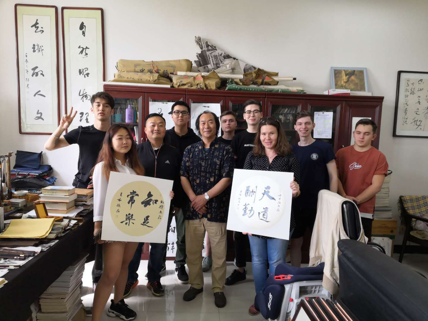 近日,国际学院在南校区书法教室进行了中国传统文化之中国书法课程的首节课,邀请中国书法家协会会员、我院书画艺术中心主任李德君,为国际学院全体留学生主讲。
