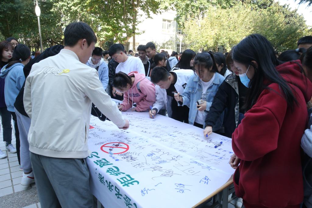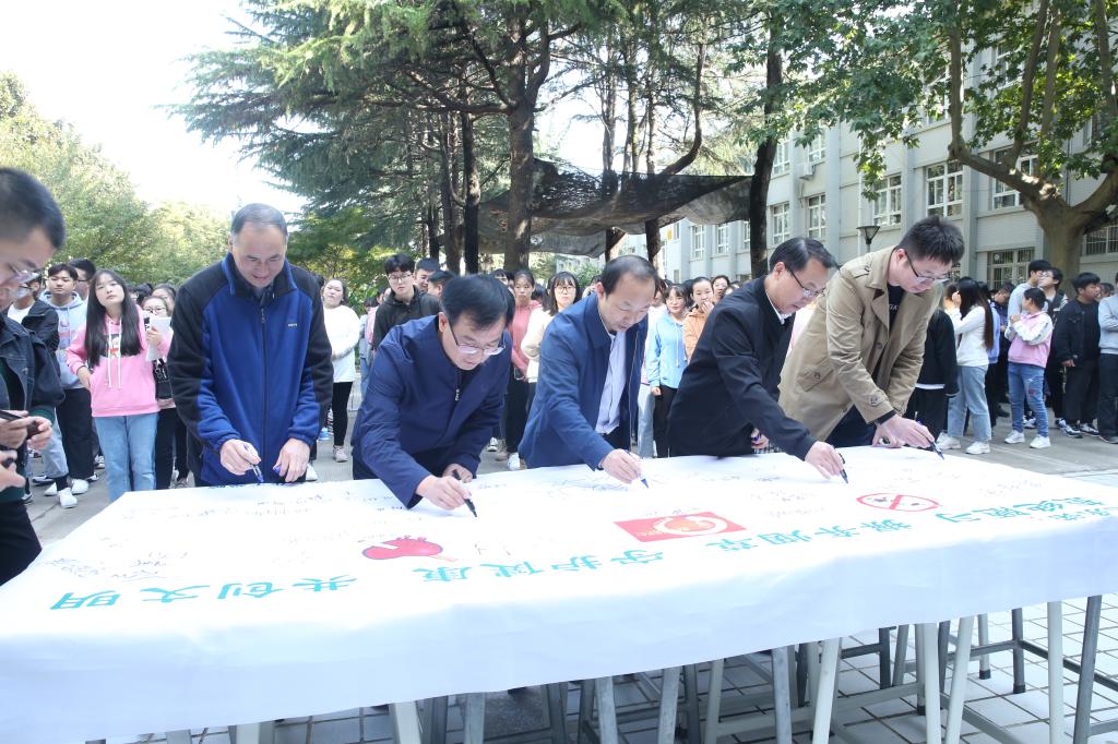 随后,出席活动领导与师生们共同在“拒绝陋习 摒弃烟草 守护健康 共创文明”横幅上签名,写下自己的承诺,以实际行动创建文明环境,守护健康明天。