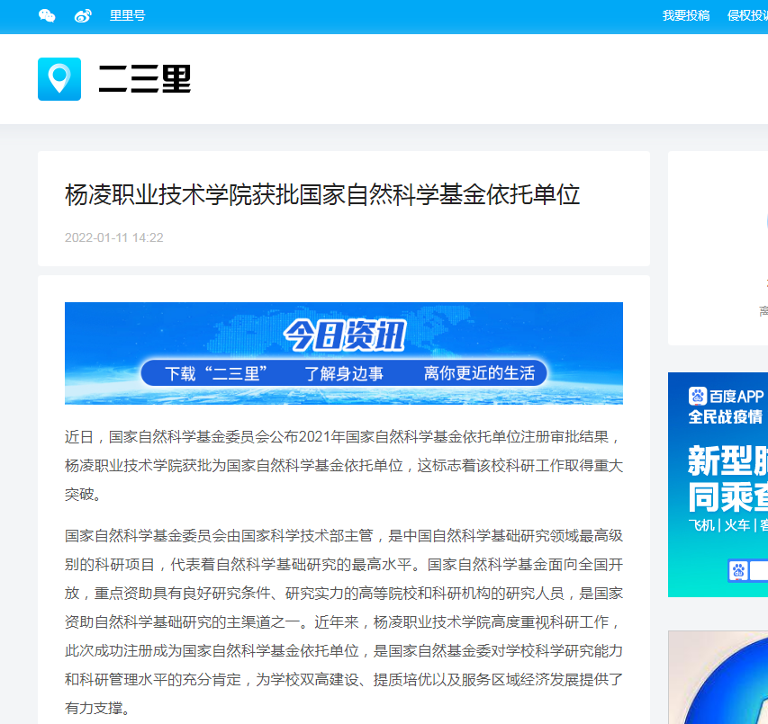 【二三里】杨凌职业技术学院获批国家自然科学基金依托单位